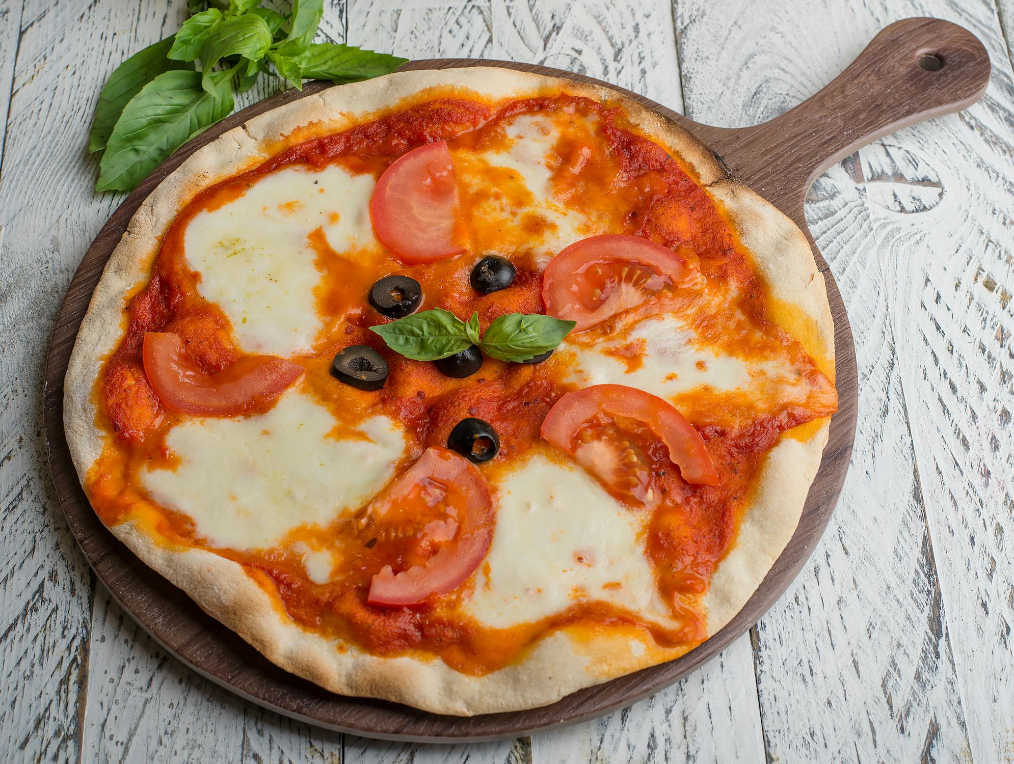 Kā to pagatavot? Uzklājiet sagatavoto tomātu mērci uz picas bāzes un virsū lieciet mozzarella sieru. Pica jācep iepriekš uzkarsētā cepeškrāsnī 250 °C temperatūrā apmēram 10-15 minūtes. Pēc 10 minūtēm pārbaudiet, vai pica ir gatava. Izņemot no cepeškrāsns, virsū pievienojiet dažas svaigas bazilika lapas.