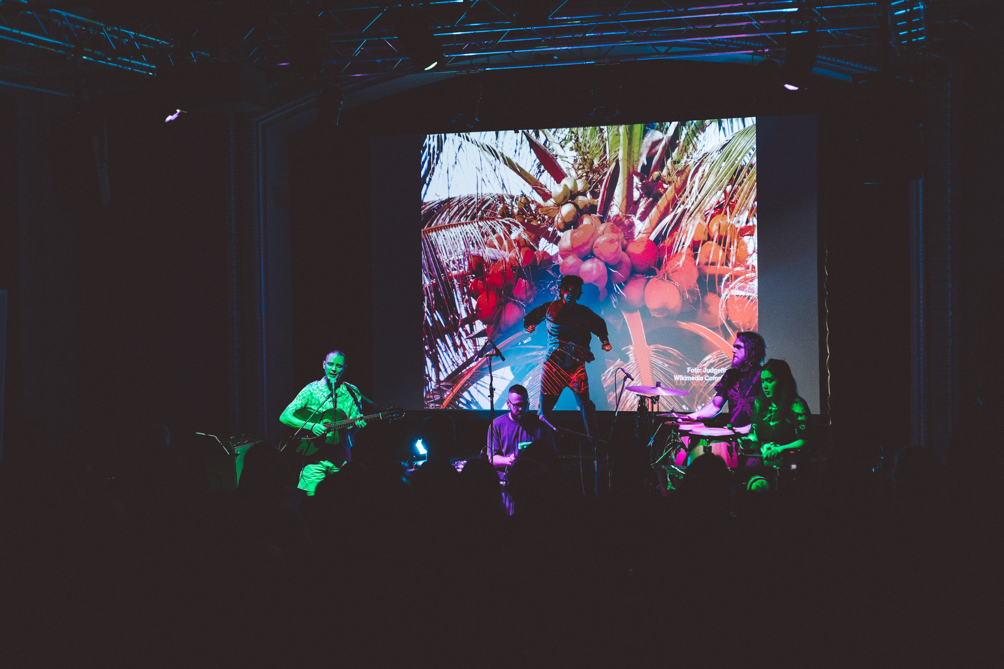 Mūziķi stāsta dziesmas leģendu: “Tu esi dienvidos. Tu esi izbadējies sutoņā, lielā upē. Pārtikas veikals ir dienām tālu. Upei, kur tu peldi ar laivu, tālu otrā krastā ir kokosu palmas. Augstas palmas ar lieliem, sulīgu kokosu ķekariem. Un tu meties airēties tajā virzienā. Aizairējies, tu izlec krastā un redzi, ka neesi pirmais. Palmu lapotnē dauzās pērtiķi, tie sit zemē riekstus prieka pēc. Tu izlec krastā, ķer un vāc kokosriekstus. Tā aizraujies ar kokosiem, ka neievēro, ko dara pērtiķi. Tie neģēļi ir ķērušies pie nākamā nedarba – paņēmuši tavu laivu un ir jau gabalā, tālu lielajā upē. Tu sākumā dusmojies, tad saproti, ka laime ir attieksmes lieta un sāc novērtēt to, kas tev ir. Tev ir saule, siltums, daudz kokosriekstu un neticams stāsts, ko pastāstīt draugiem un katram, ko satiksi. Kad paēd un padzeries, kas atliek tālāk? Atliek dejot balafona un citu Āfrikas instrumentu pavadījumā.”
